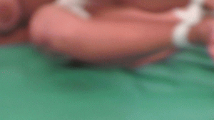 Maria struggles and bounces around so energetically that the camera can hardly keep up! First she has just a few ropes on her and then the hogtie rope is added. She's a wild one and we're lucky she didn't just wriggle right off the bed! Cleavegagged, naked, cute, adorable. JMM: barefoot, bound and gagged, hogtied, nudity, rope bondage.