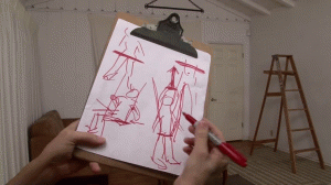 Behind-the-scenes footage of Phoebe getting wrapped up by Lorelei. Jon Woods and two other assistants in the room can be heard participating in the cheerful conversation and laughter.