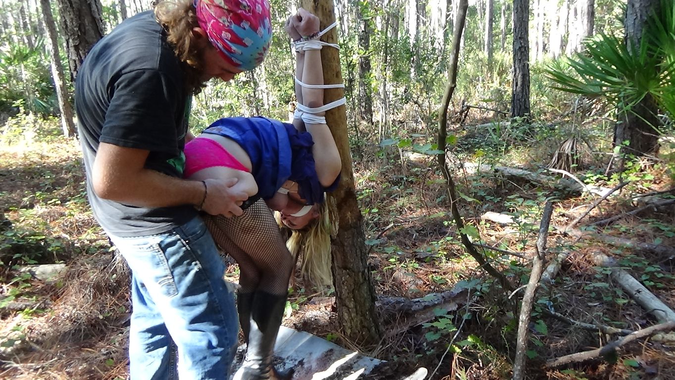 bondage, damsel in distress, outdoor bondages, boots, upskirt, fishnet stockings, lift and carry, rope bondage, tied elbows, cleave gag, struggling, strappado, breast bondage, tied tits, escape, bound running, recapture, tree tied, strappado, simulated sex, BDSM