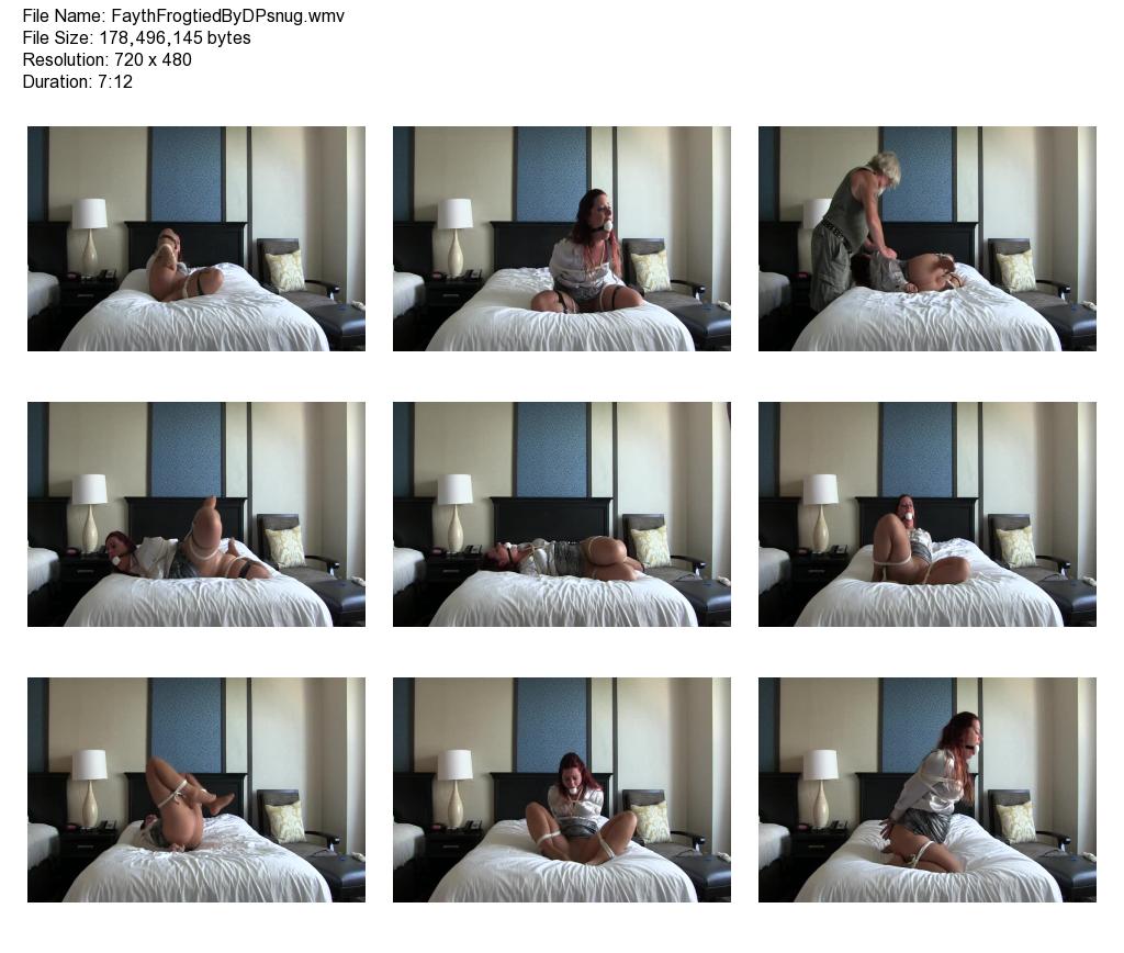 This is one of those times that your hanging out at the bar at FetishCon and meeting different kinky people from all around the world and all over the US. One of the people i had the pleasure of meeting was DPsnug and we chitchatted and it just felt right that i let him tie me up and i show him some hinters about rope and then I show him the Faythful way of struggling in binds and tape. He gags me with a very large ballgag and wow, it sure fills my mouth and spreads my jaw as far apart as it will possibly go. I struggle around the bed as he comes in a fondles me and spanks my ass as I am helpless against his torment. He sits back and continues to watch me struggle but then leaves me to struggle by myself. I wonder if he will come back or get distracted by all the hot models at fetishcon in the lobby. I know I would but i must figure out how Im going to escape.