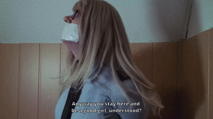 In a backroom of a man's house: A busty gurl, Chrissina, becomes XXXX into the tiny room and is faced to the owner of the house and property. He has busted the big boobed beauty in her tight top and jeans while snooping on his property and keeps her for a burglar. The blonde beauty asserts her innocence but the man don't belive her and want to call the police. After Chrissina stayed some time in the room the owner returns but was turned down by the cops because of too much otehr work. Now he decide to take care of the voluptous intruder by his own and starts to overwhelm Chrissina brutally! The buxom Bimbo becomes strictly tied up to a chair and effective gagged with amounts of black tape. Now, knowing that his unwelcomed guest is safe stowed up, the man leaves and left Chrissina alone in her uncomfortable predicament, not knowing when she becomes released from this unlucky situation.