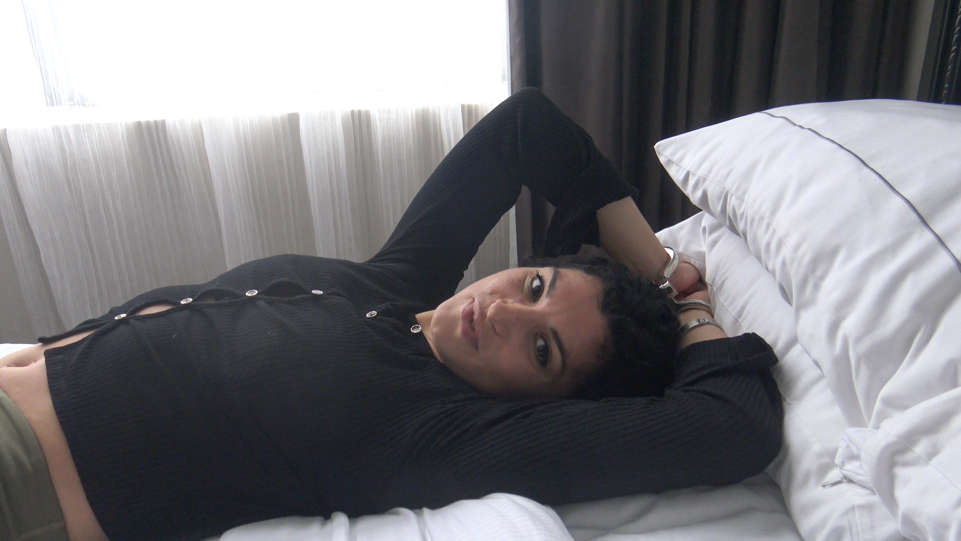 I was in the USA this year and i met up with my Beautiful friend Bella Lux, i mentioned to her that i had brought a large collection of handcuffs with me and her eyes lit up! so she said lets go and play with them so before long we are in my hotel room and she went straight over to the cuffs wondering what ones she wanted to put on. so she selected kub Irish 8s and teased me by pretending to lock herself up, she asked me to lock her up and she didn't need to ask twice, i pushed her onto the bed and it was let the fun begin Time. she loves the cuffs locking her wrists in front of her and she was also thrilled that she had a matching set around her ankles. rolling around the bed teasing me with her so cute " what are you going to do to me" comments she was soon rolled over and a slap to that beautiful ass sent her giggling , i ran my fingers below her toes and started to caress her bare feet then started to tickle her feet. she squeals with delight and she just loves being tickled. my goodness she is loud so i had to throw a ballgag on the bed, she XXXXnt care and teases me by saying she is going to gag herself. well that was an opportunity not to be missed. she has now got a red ballgag fastened between her teeth and the spanking and tickling is still making her giggle. so i decided to hogcuff her and she rolled onto her side and i saw her pierced nipples through her see through bra, i di slightly target them but hey i want for the tickling even harder. so she wanted to play and i just had to give her the wish she requested. There's more to come for you young lady.