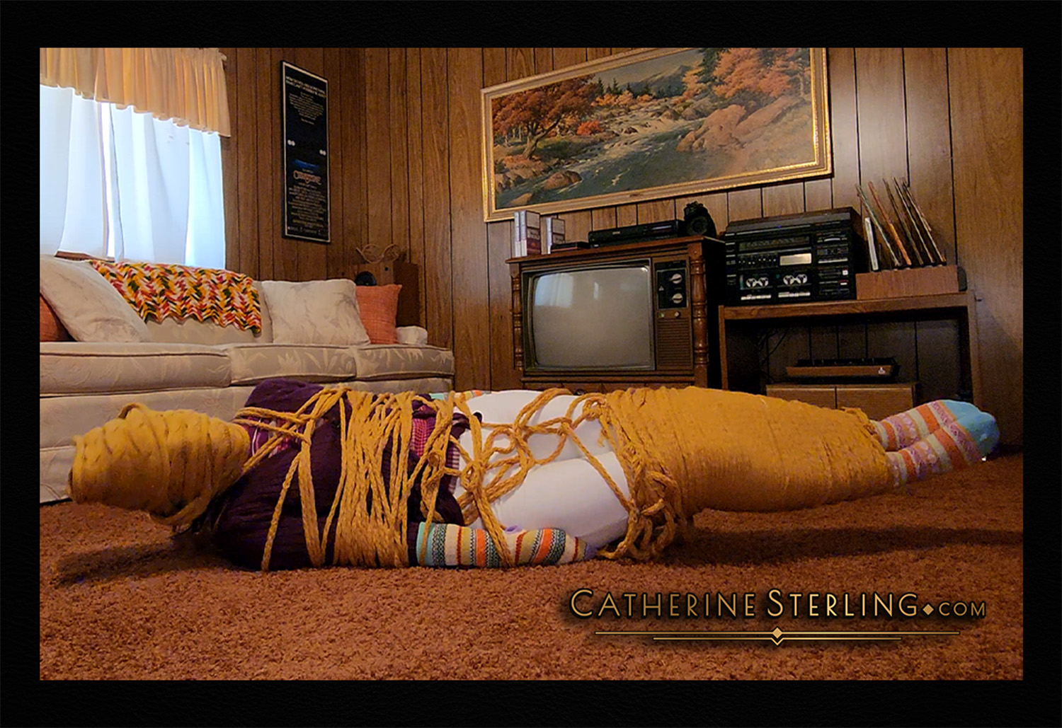 Wrapped Up in Wool, Muffled by Merino, Silent & Swaddled: Catherine Sterling Mummified, Mitted & Gagged with Socks by Housemate Ami Mercury!