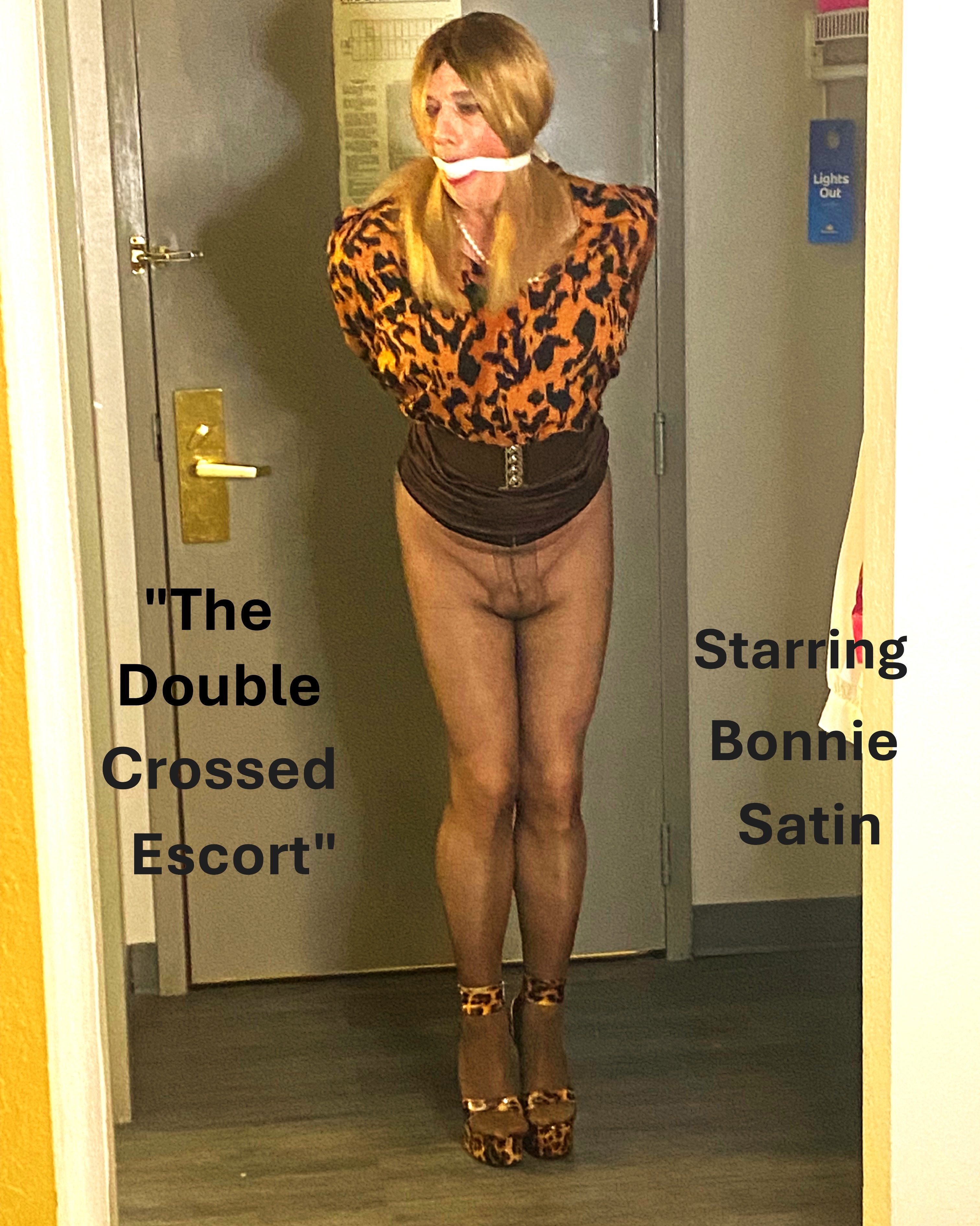 The Double Crossed Escort" is the follow up to Bonnie Satin's very popular debut scene on Transformed By Bondage, "Tricked And Trapped". This scene takes Bonnie Satin's looks and captivity to another level. In "The Double Crossed Escort", Bonnie plays a Hotel Escort, whom has arrived at a room at a wayward hotel, to service an elderly gentlemen who has contacted the service that she works for. But within minutes, Bonnie finds her hands tied behind her back with rope, and her mouth silenced with a tightly secured ball gag. It seems the man has no intention of paying Bonnie for her sexual service like most clients. His plan is to just take what he wants, sexually from Bonnie. As well as photographing and filming Bonnie bound and gagged, and selling the pics and video for his profit. With The Escort tied up, gagged, and helpless, he can now do as he wants with Bonnie, and no one will be the wiser. So, here is the photoset and slideshow of Bonnie Satin as "The Double Crossed Escort".