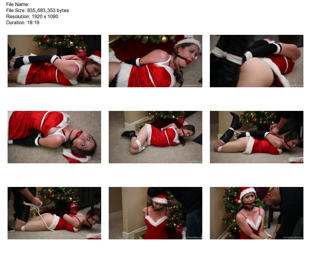 He had wished for a sexy bondage slave for Christmas but never believed his wish would actually come true! When he comes downstairs Christmas morning he finds a very festive Chrissy Marie tied up and gagged under the tree! He can’t believe it, he has always wanted his own slave and the one Santa brought him is just perfect! She is even wearing black knee high boots and black satin gloves that go up over her tightly bound elbows! She is scared and confused as she squirms helplessly in her hogtie. He leaves her struggling while he goes to get some extra implements to use on his sexy new slave. Before he goes he tells her they are going to have so much fun, but Chrissy isn’t so sure if she agrees!